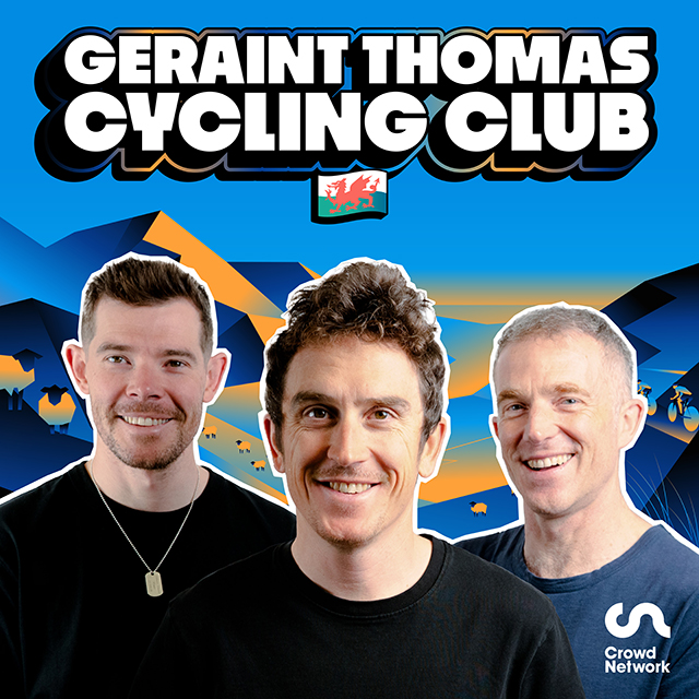Podcast artwork for the Geraint Thomas Cycling Club, which is a network of shows including Watts Occurring, the podcast of INEOS team-mates Geraint Thomas and Luke Rowe featuring Tom Fordyce. It also includes Watts Occuring Femmes, focusing on women’s cycling with Emma Finucane & Manon Lloyd.